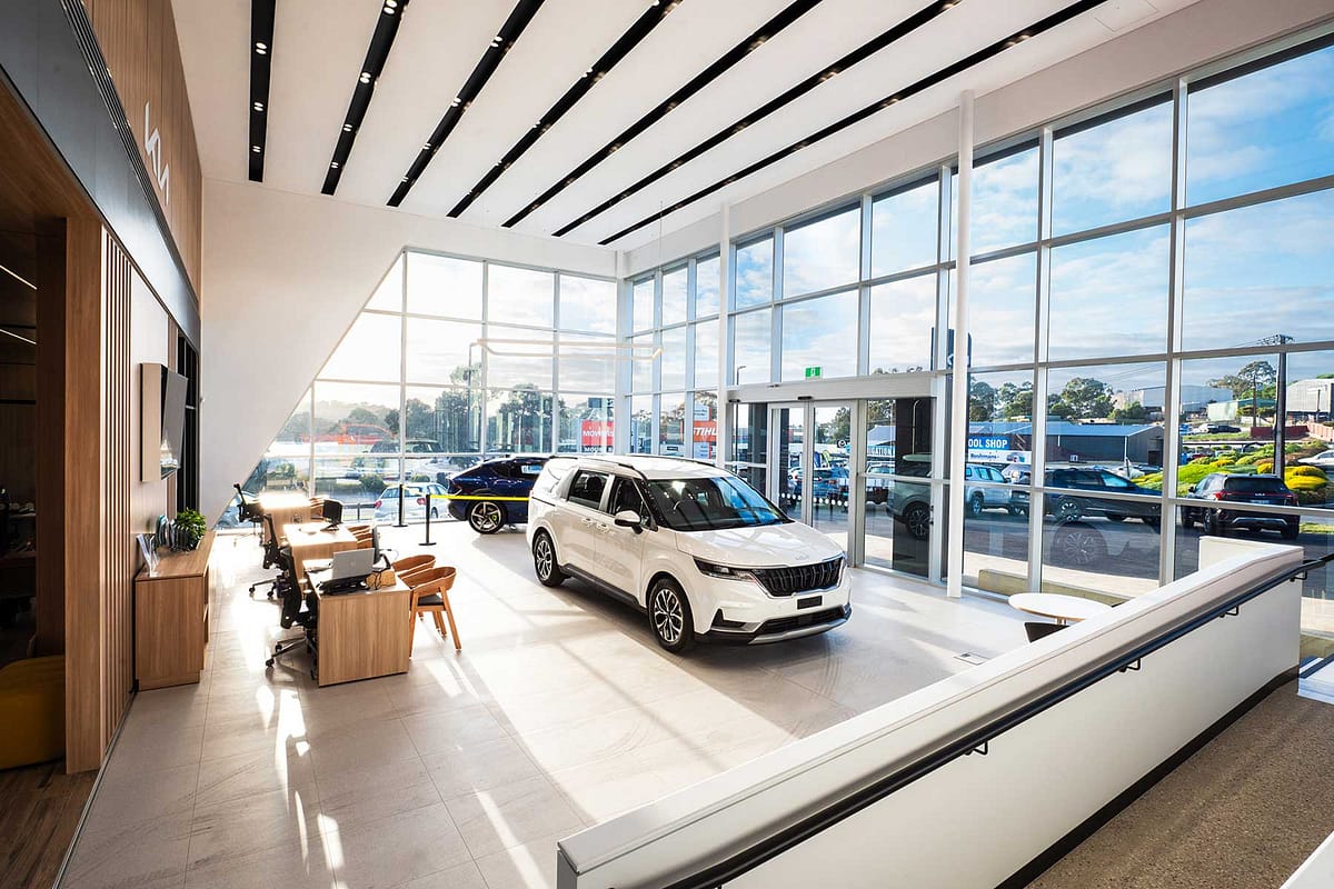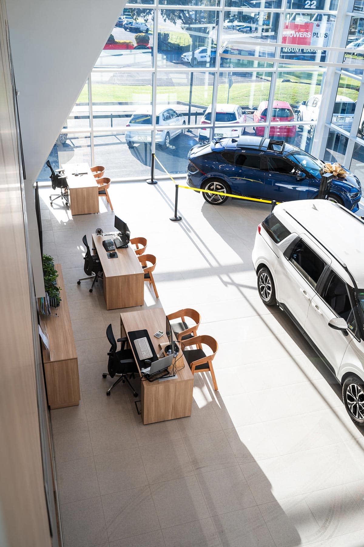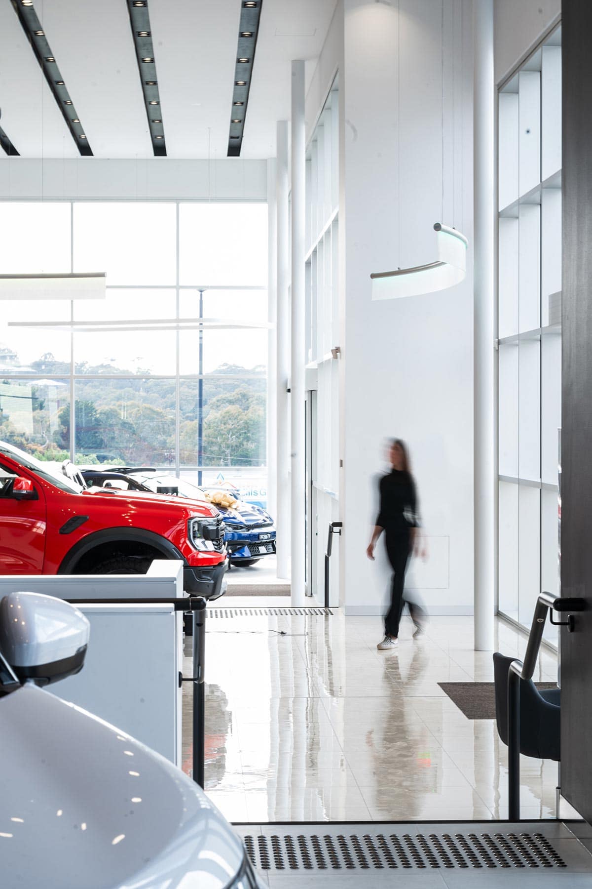 With soaring ceilings and dramatic lines, our design team have balanced three individual brand guidelines within this premier new automotive dealership for Mount Barker Auto Group at Totness.